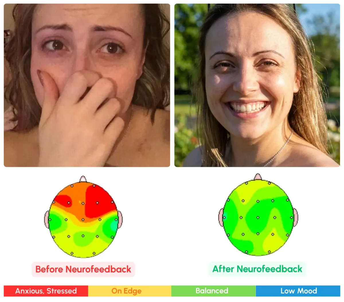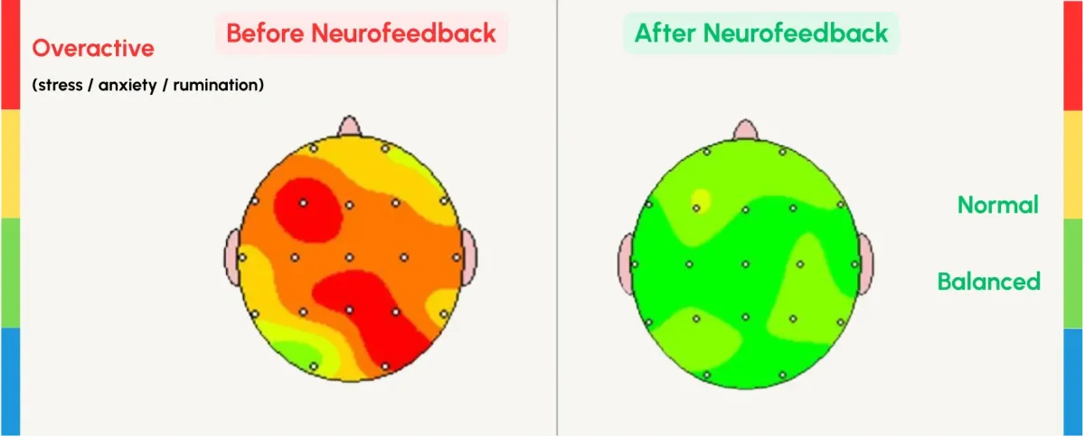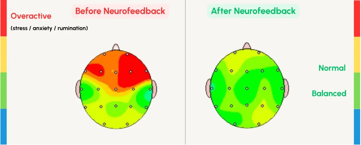 Neurofeedback is a science-backed way to train your brain how to calm itself. Your brain is always sending signals, and sometimes those signals get stuck in stress mode. This can lead to symptons like anxiety, brain-fog, overthinking, or constant feeling on edge.